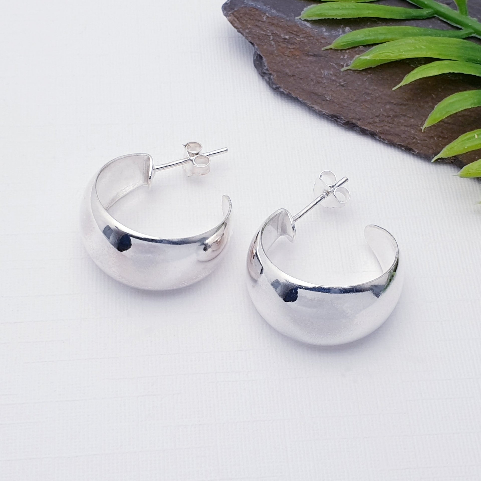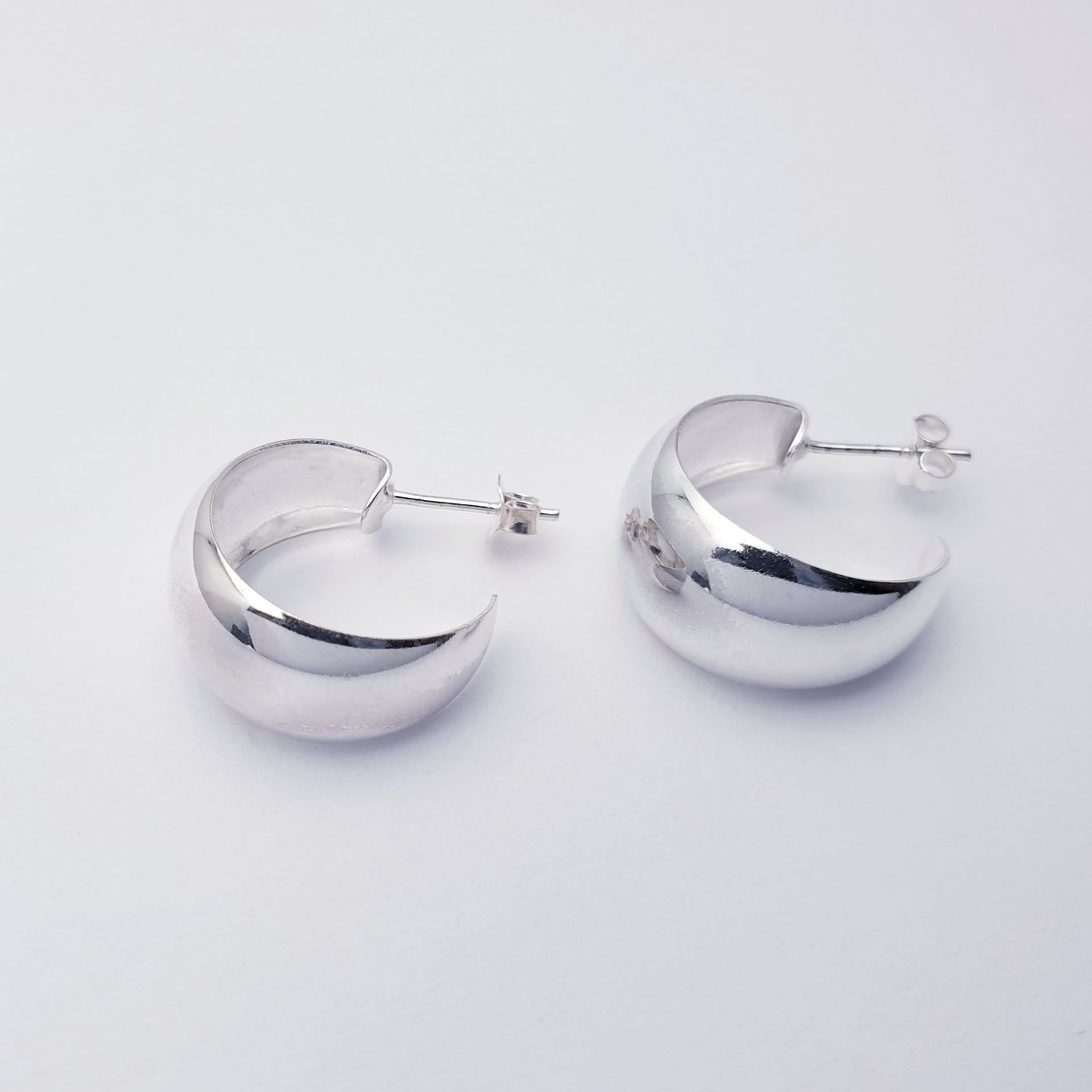 Our Sterling Silver Dome1.9 cm Half Hoop Earrings feature a beautifully smooth, curved design with a high-polish finish that reflects the light effortlessly. The softly rounded dome shape creates a bold yet elegant look, making these earrings a versatile addition to any jewellery collection.