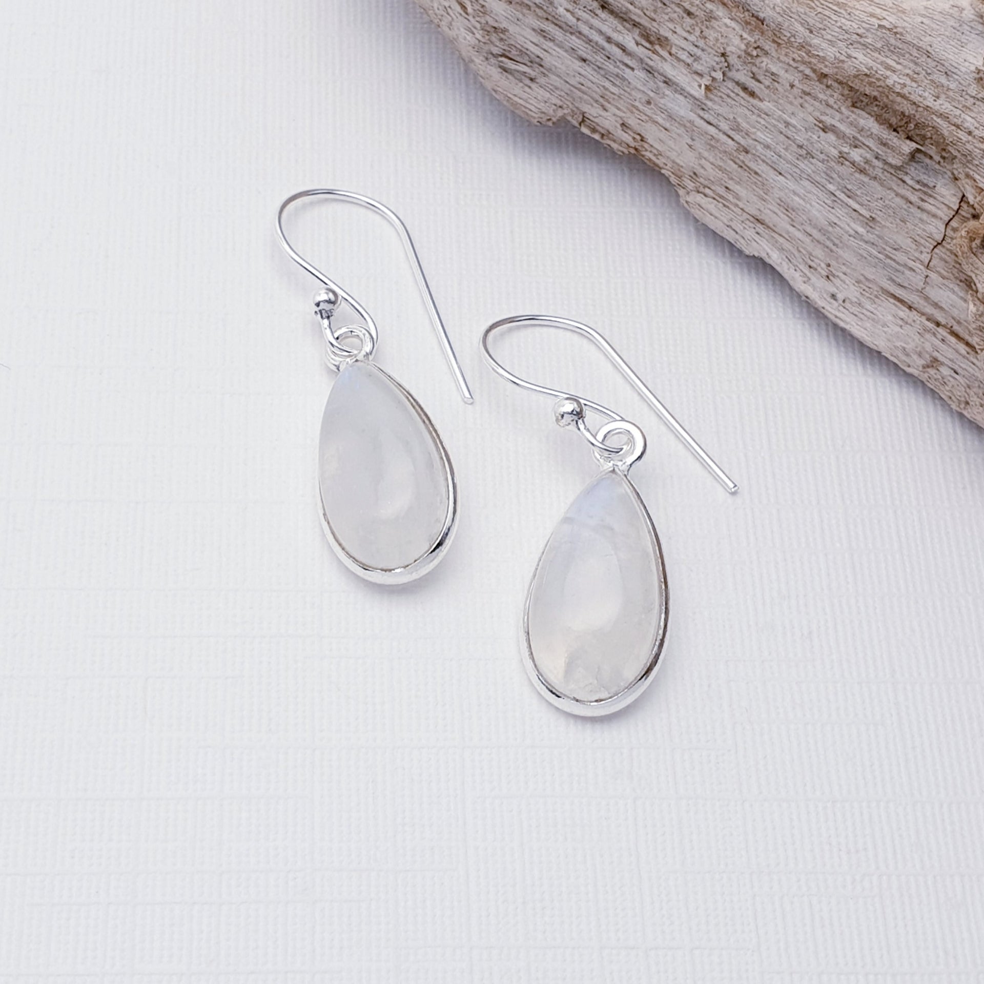 Our Moonstone Sterling Silver Medium Teardrop Earrings are perfect for everyday wear or special occasions.