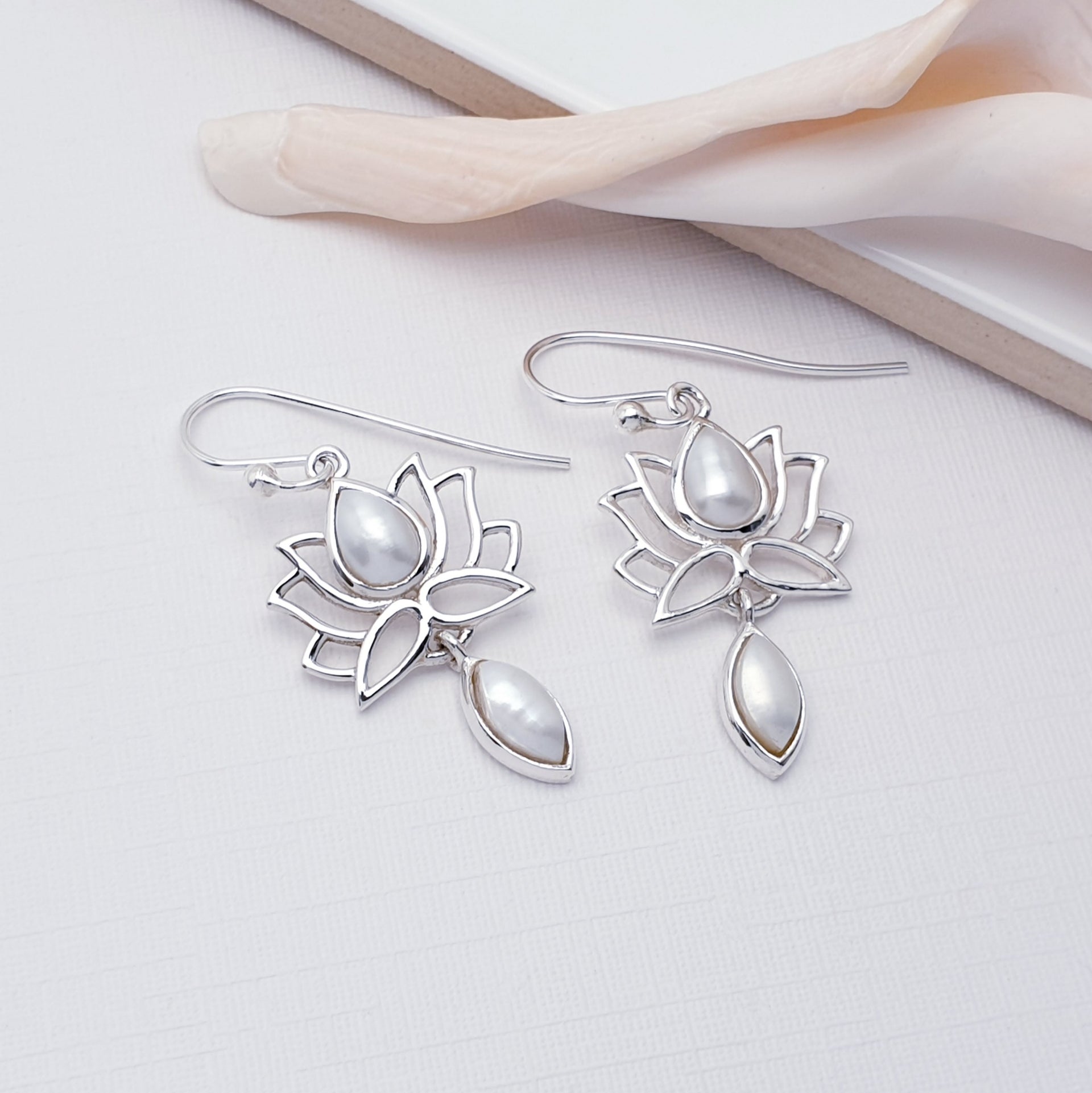 Graceful and timeless, our Pearl Sterling Silver Lotus Flower earrings celebrate beauty, purity, and renewal.
