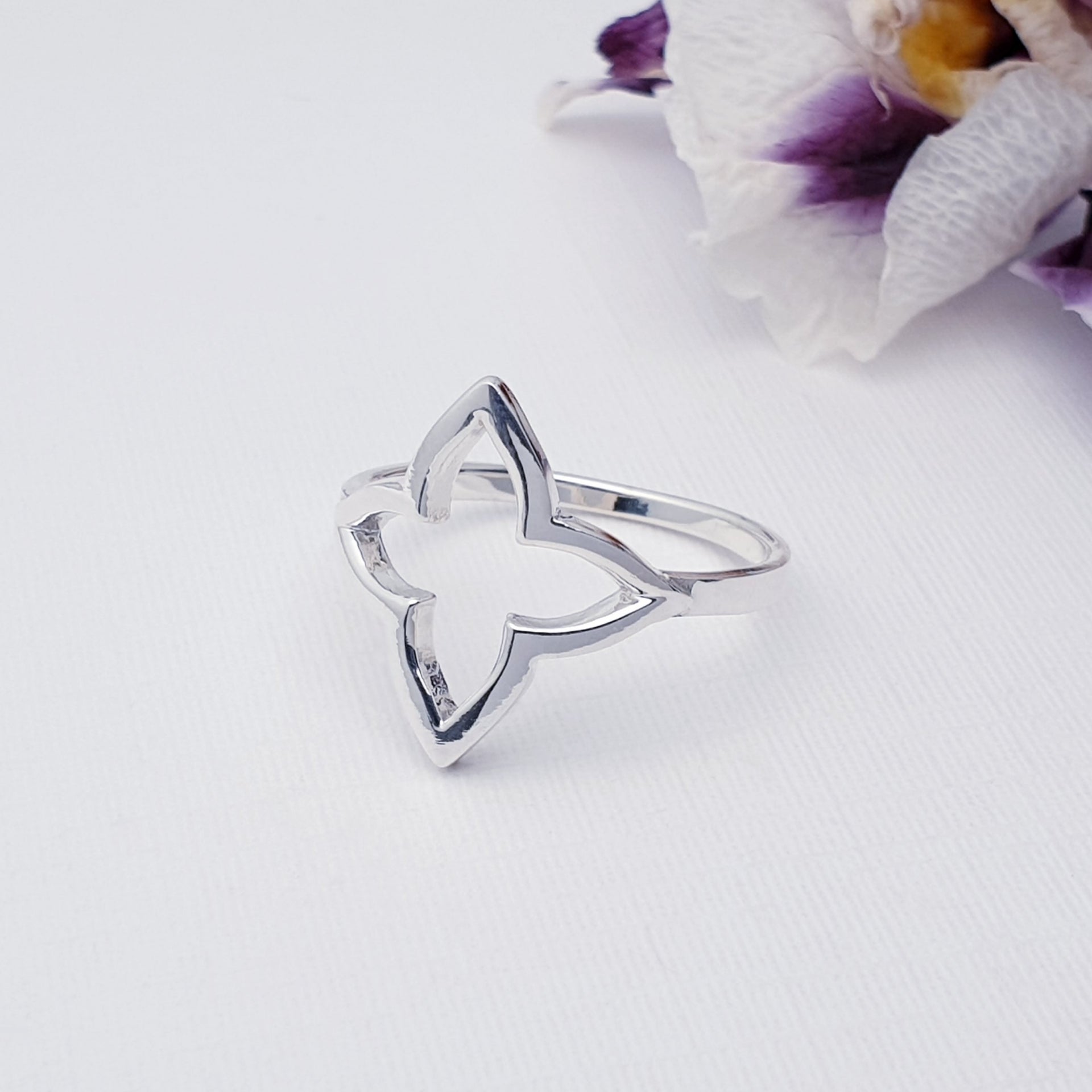 Radiant and full of subtle charm, this beautiful ring combines minimalist design with celestial inspiration. Crafted from Sterling Silver, this ring features a precisely cut-out four-pointed star at its center, set on a smooth, plain band for a sleek and modern finish.