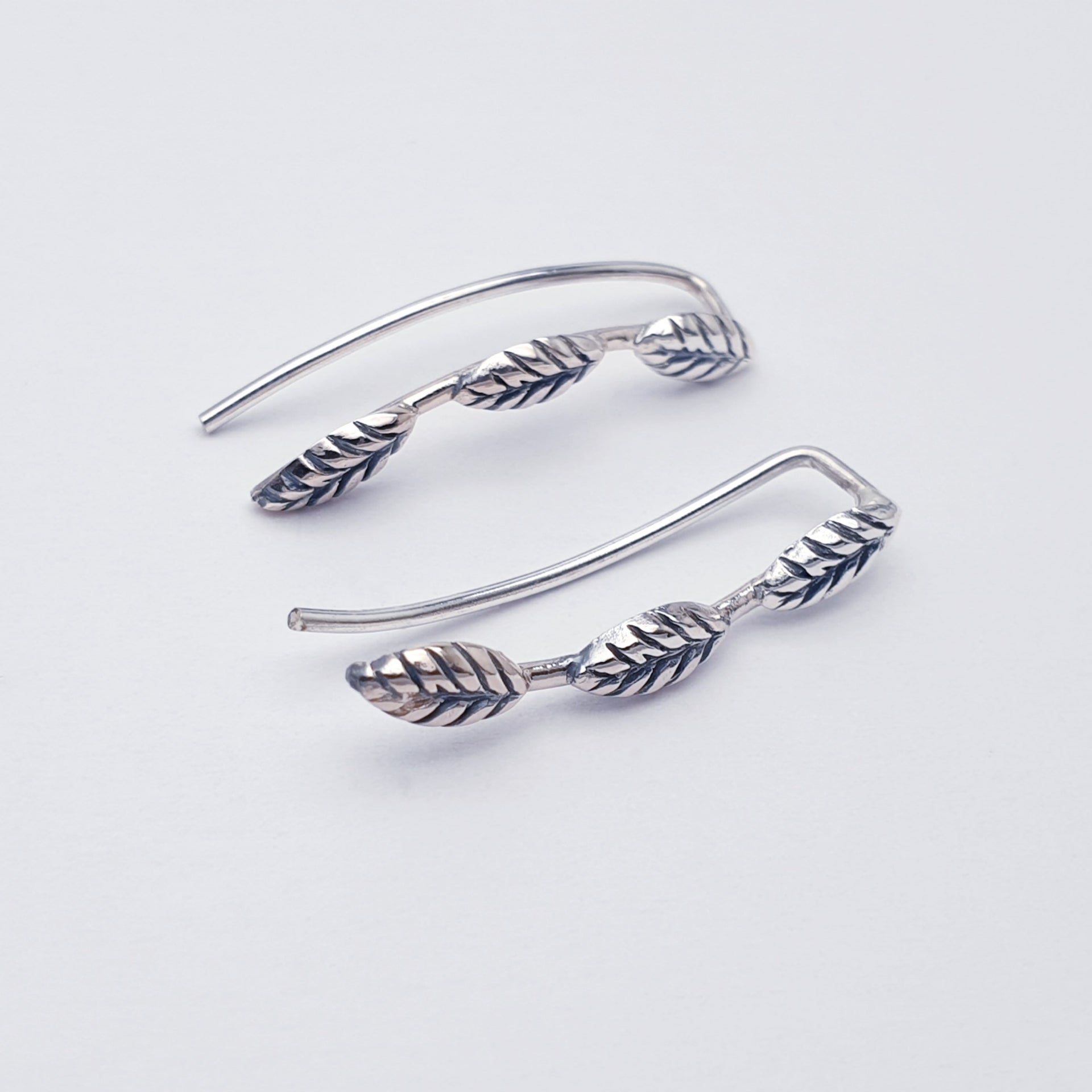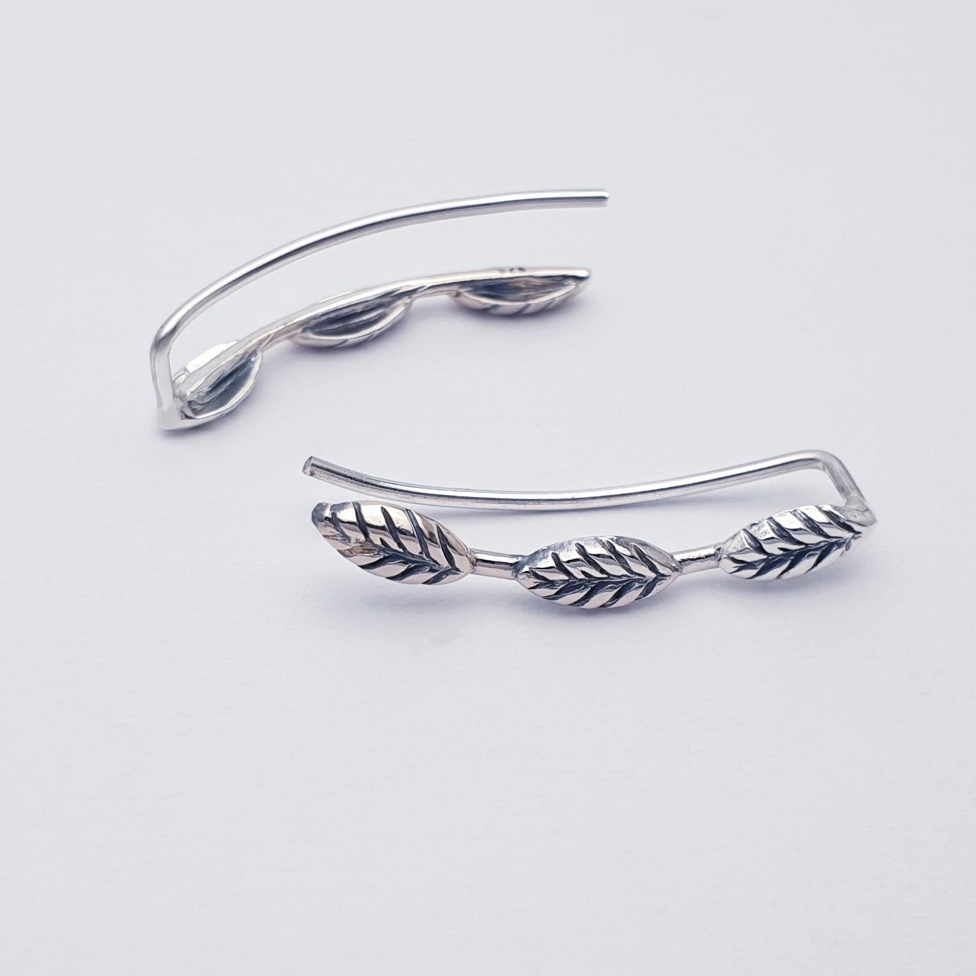 As the name suggests, these little earrings climb beautifully up the ear in the form of three gorgeous little leaves. Starting from the bottom of the ear, these ear climbers have a silver bar running up behind the ear that can be squeezed together so that the earrings stay in place. An oxidised finish give these ear climbers depth and presence.