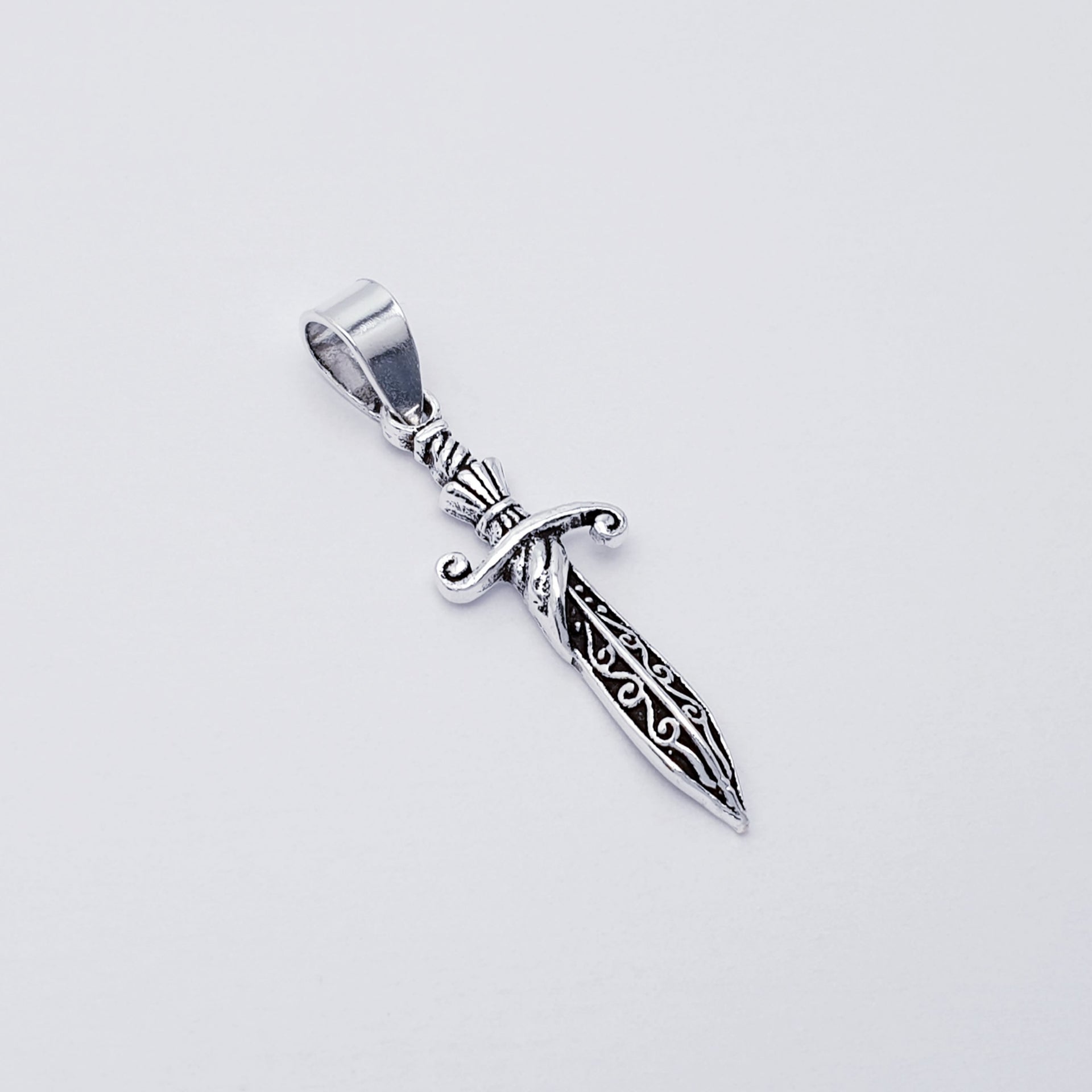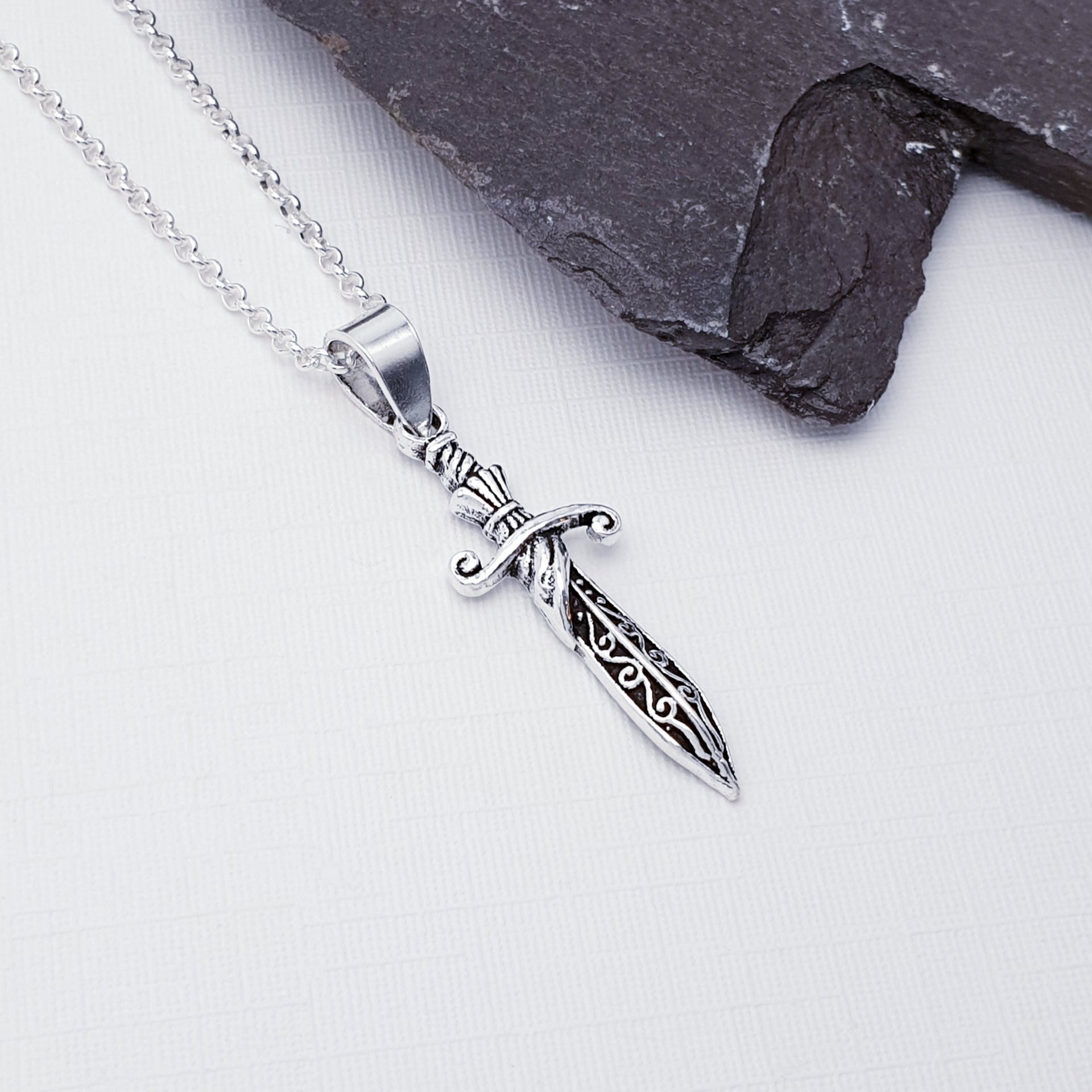 Our Sterling Silver Sword Pendant features a sleek, finely detailed sword with an oxidised finish giving the design depth and presence. Symbolising strength, courage and protection, this pendant makes a striking yet timeless statement.