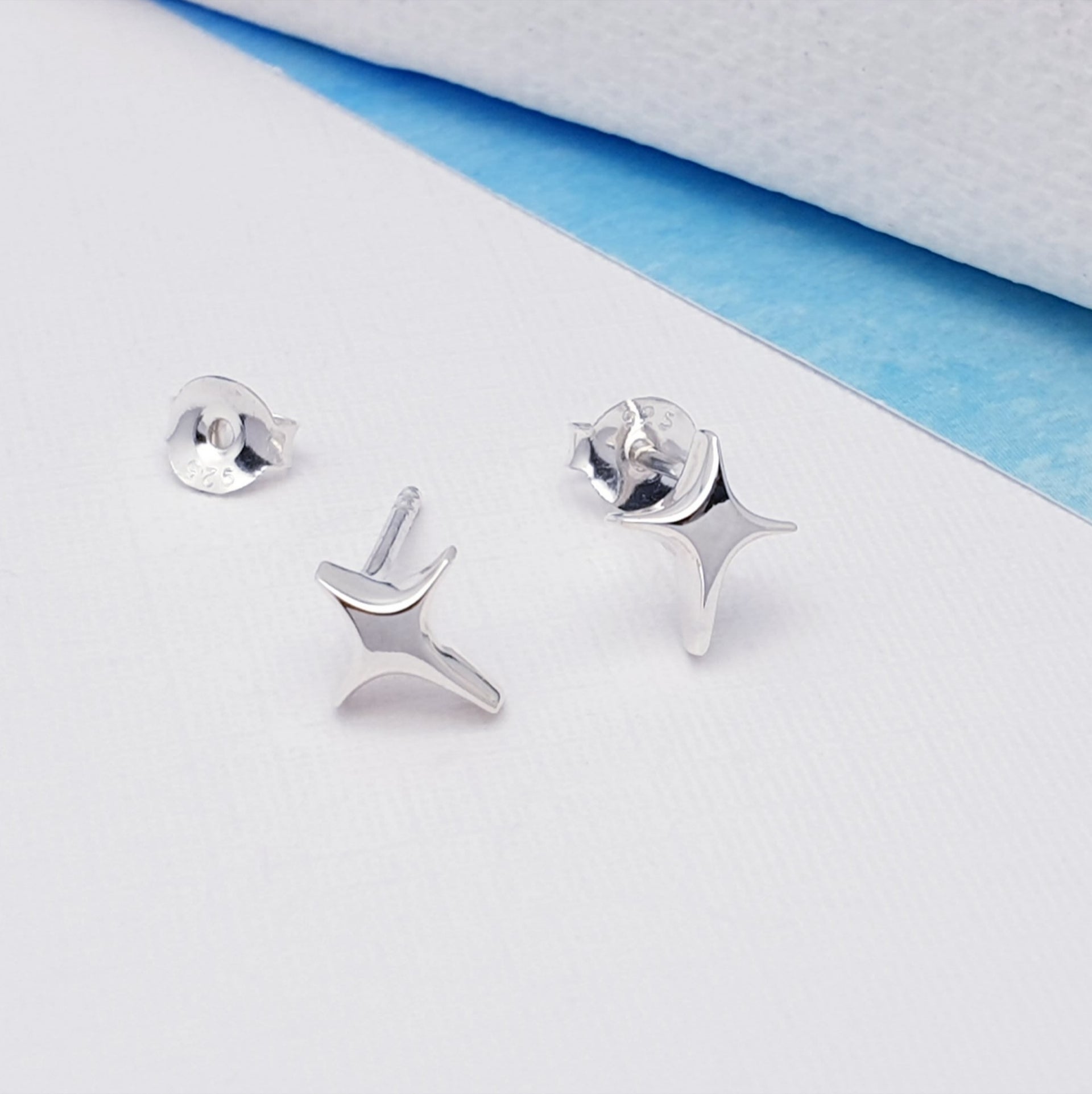 Our Sterling Silver Four Point Star Studs feature a sleek four-point star design, symbolising guidance, balance, and clarity. Simple yet striking, these studs are lightweight and easy to wear, making them a versatile addition to any jewellery collection. Their clean lines and timeless shape offer a subtle celestial touch that works beautifully for everyday styling.