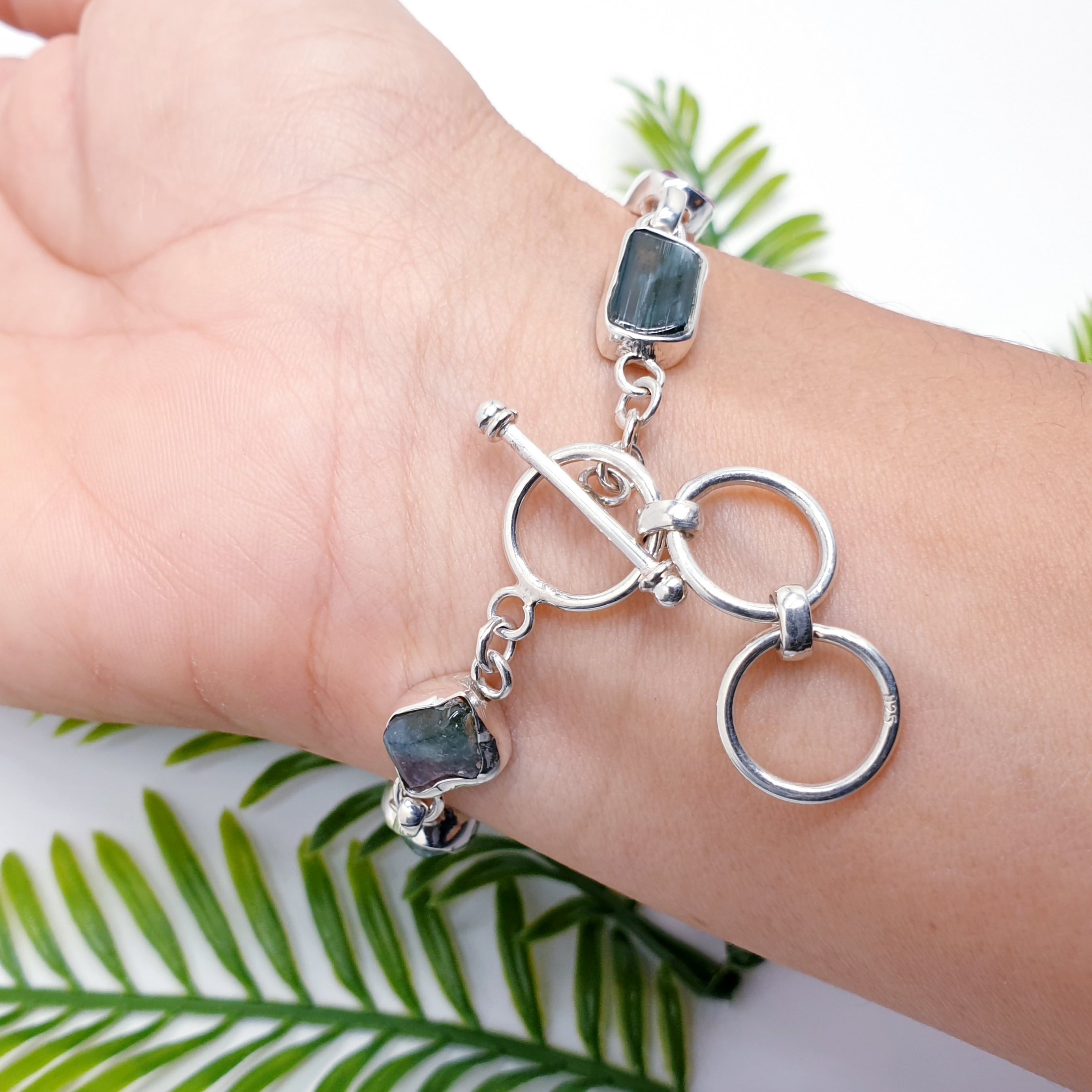 Our One-Off Mixed Tourmaline Sterling Silver Multistone Bracelet is a vibrant celebration of colour and natural gemstone beauty. Each Tourmaline has been hand-selected for its unique shade and organic shape, ranging from deep wine tones and earthy greens to soft aqua blues and delicate pinks. The raw, polished stones retain their natural character, giving the bracelet a wonderfully organic and individual feel.