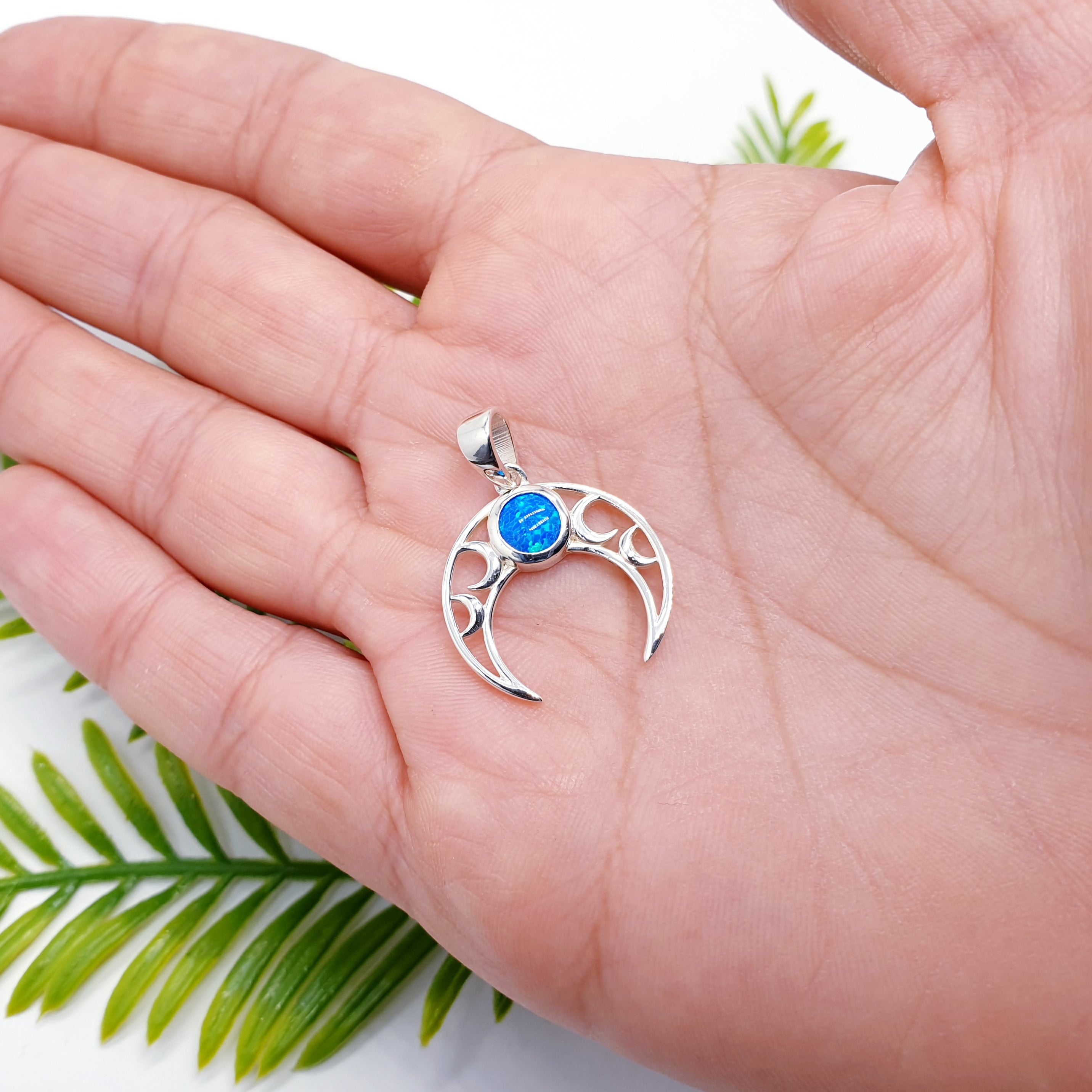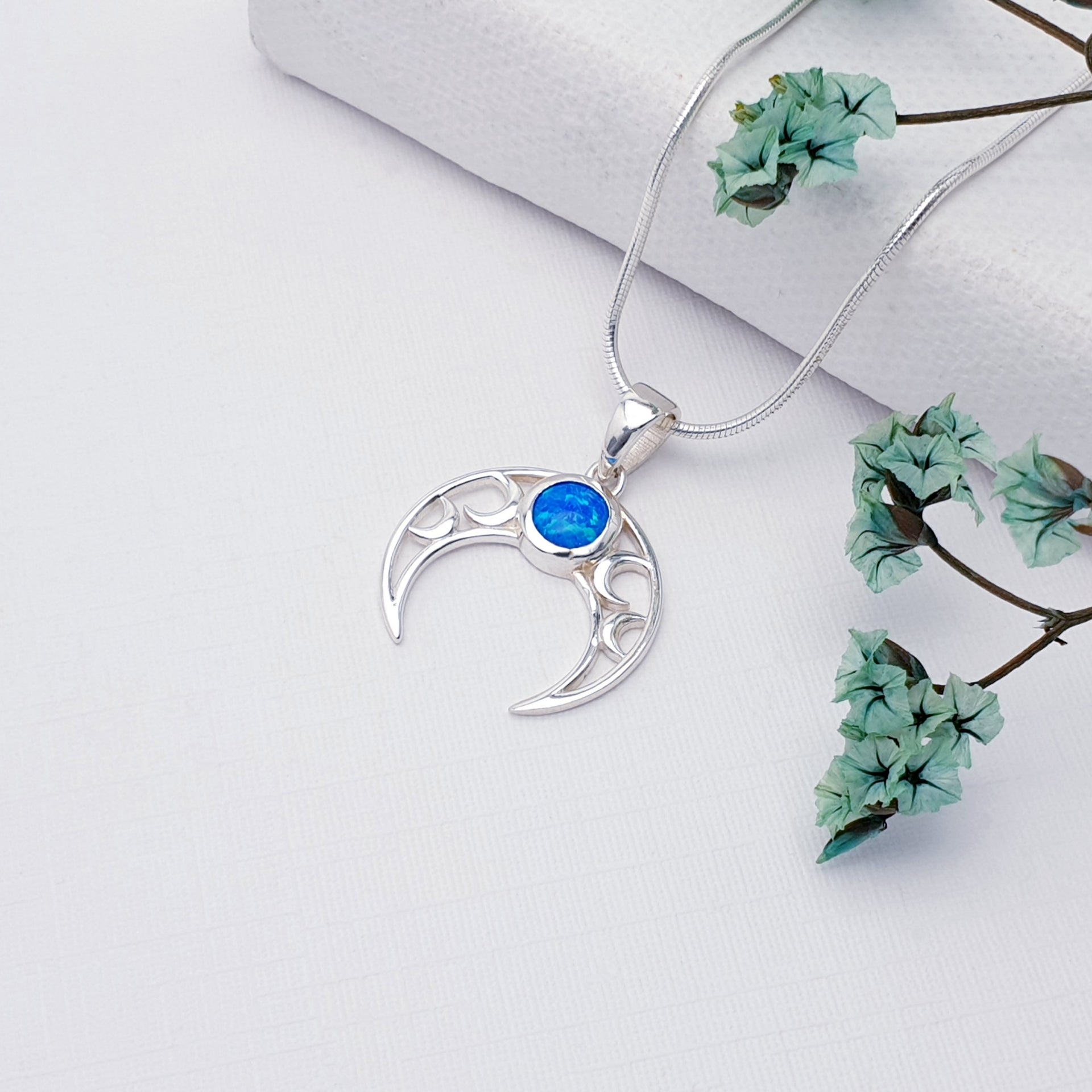 Embrace celestial elegance with our Reconstituted Opal Sterling Silver Inverted Crescent Moon pendant.